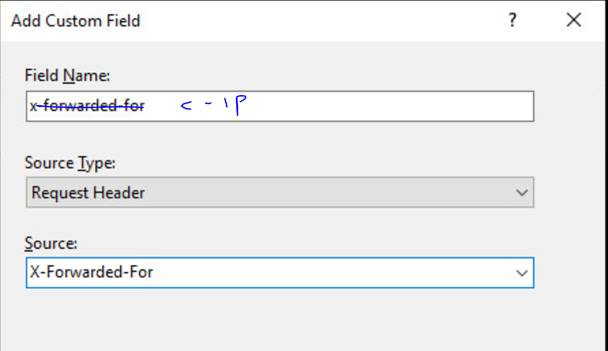 The problem comes when you want to capture this information in the W3C Logging Fields, which does not support direct mapping for any header named X-Forwarded-For.